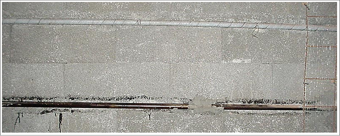 Симпролит блоков, в которых уже смонтирована горизонтальная арматура.