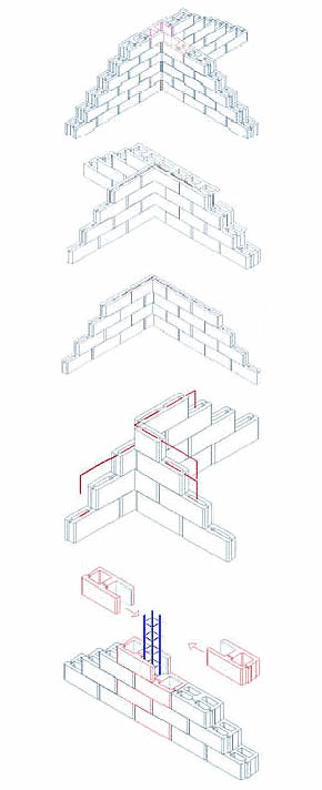 Стены из Симпролит блоков возводятся таким образом, что блоки кладутся