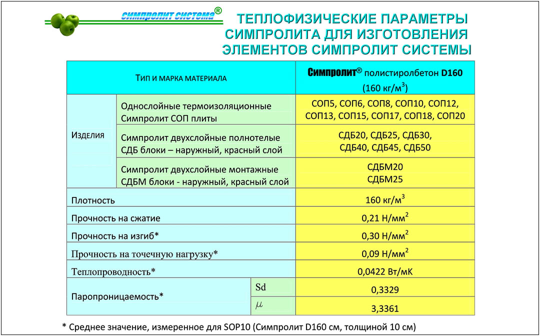 Основой Симпролит системы является новый материал Симпролит полистиролбетон, который благодаря своим уникальным техническим характеристикам "Центром разработок и внедрения новых материалов" назван "Чудо материалом XXI века". К примеру, а по рекомендации ИЛ НИИ Строительной физики РАСН, из Симпролит блоков, толщиной всего 300мм можно выполнять наружные стены в виде однослойных конструкций без дополнительного утепления для наиболее жестких климатических зон России.