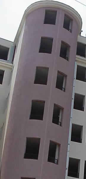 на углах здания, обрамление оконных и иных проемов плитами с подогнанными